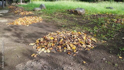 © 隼人 増田, Obraz premium 道端に集められた落ち葉の束