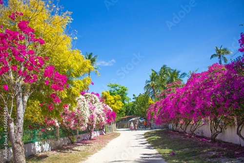 Obraz premium カラフルな植物が彩る南国リゾートの散歩道