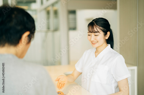 © buritora, Obraz premium 病院の受付にいる女性(患者)