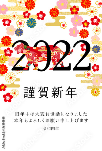Obraz premium 2022年寅年年賀状-和柄寅賀詞付き白色背景