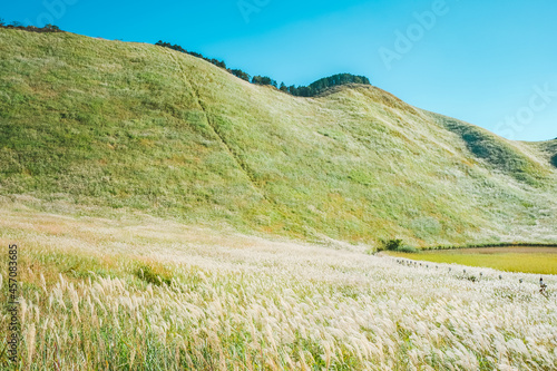 © Rummy & Rummy, Fototapeta premium 秋の曽爾高原と風に揺れるススキ