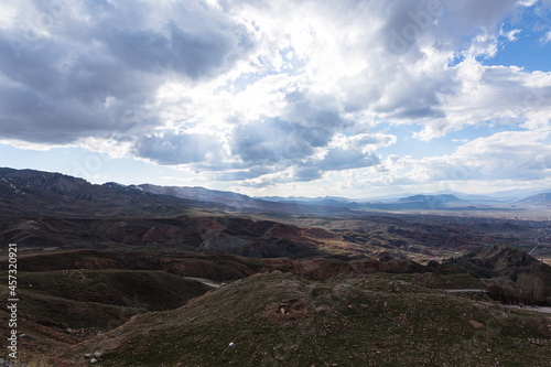 © pespiero, Naklejka premium トルコ イサク・パシャ宮殿の山から見えるとドゥバヤジットの街並みと広陵地帯
