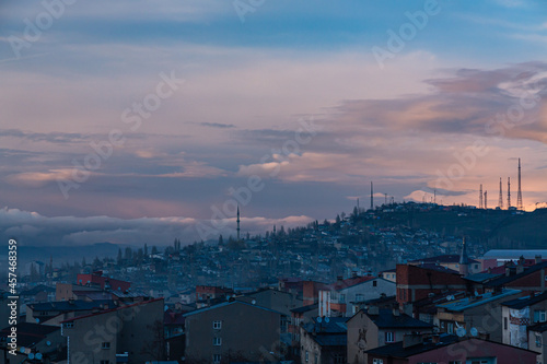 © pespiero, Obraz premium トルコ エルズルムのエルズルム城から見える丘に広がる街並みと夕焼けの空