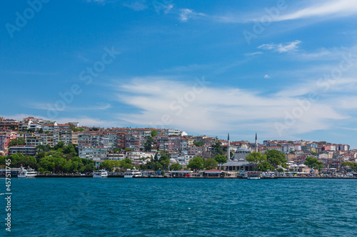 Fototapeta premium トルコ イスタンブールのボスポラス海峡を進むフェリーから見えるアジア側のユスキュダルの街並み