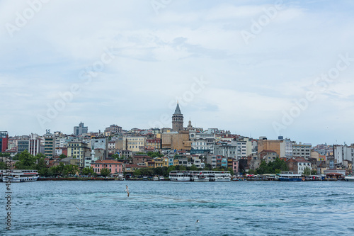 © pespiero, Fototapeta premium トルコ イスタンブールの新市街の街並みとガラタ地区の丘の上に建つガラタ塔