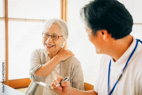 © buritora, Obraz premium 在宅介護を受ける高齢者女性(笑顔)