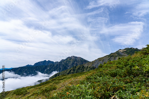 Naklejka premium 白馬八方尾根から雲海と鹿島槍ヶ岳方面を望む