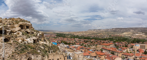 © pespiero, Naklejka premium トルコ カッパドキアの観光拠点のユルギュップの丘から見える街並みと洞窟住居