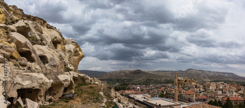 © pespiero, Naklejka premium トルコ カッパドキアの観光拠点のユルギュップの丘から見える街並みと洞窟住居
