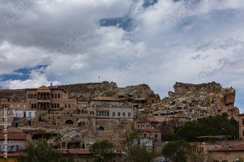 Fototapeta premium トルコ カッパドキアの観光拠点のユルギュップの街並みと洞窟住居