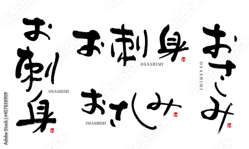 Naklejka premium おさしみ お刺身 筆文字 デザイン書 料理シリーズ