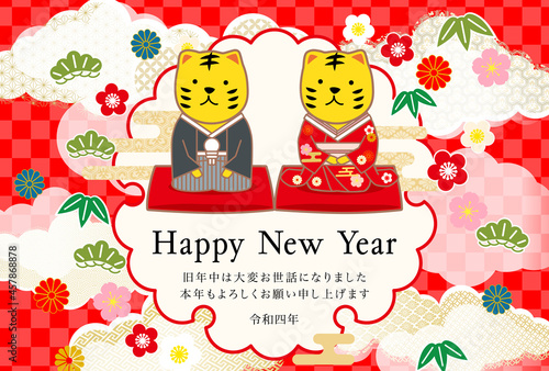 Naklejka premium 2022年寅年年賀状-和柄寅賀詞付き