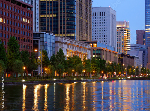 © homebell, Fototapeta premium 皇居の内堀に映る丸の内の夜景