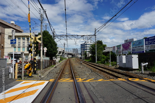 © cloudolivine, Naklejka premium 日本の夏のさわやかな空と踏み切り