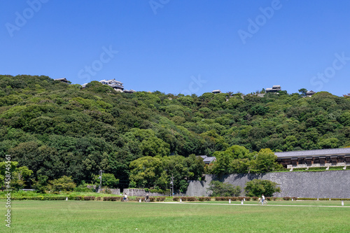 © Hachita, Obraz premium 芝生のきれいな公園とお城