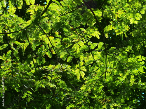 © smtd3, Obraz premium 午後の日の当たるメタセコイアの葉っぱ