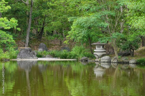 Obraz premium 新緑に包まれた日本庭園の情景@大阪
