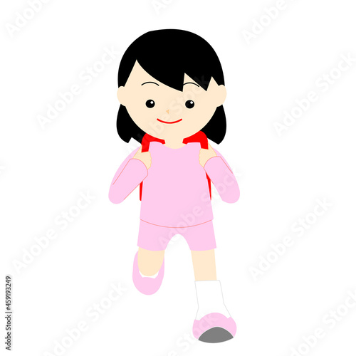 Obraz premium 正面に向かって走る長袖姿の女の子