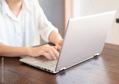 © 理絵 ジュト, Fototapeta premium 自宅でテレワークをする人の手元とパソコン画面のクローズアップイメージ