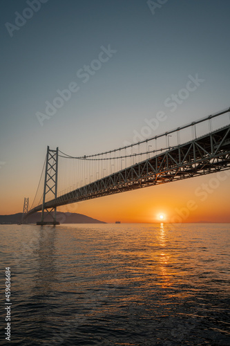 © 雄祐 岡山, Obraz premium 明石海峡大橋の夕景
