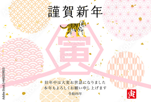 Fototapeta premium 2022年年賀状-ピンク色の和柄背景