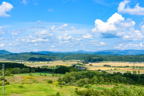 Obraz premium 萌の丘 素晴らしい道央の穀倉地帯を望む
