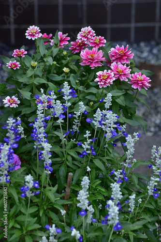Naklejka premium サルビアとジニアの寄せ植え
