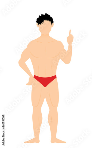 Fototapeta premium 腰に手を当てて指をさすボディビルダーの男性