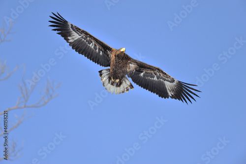 Obraz premium オオワシの幼鳥の飛翔(北海道・知床)