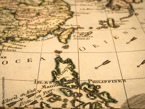 © moonrise, Fototapeta premium アンティークの古地図 フィリピンと南シナ海
