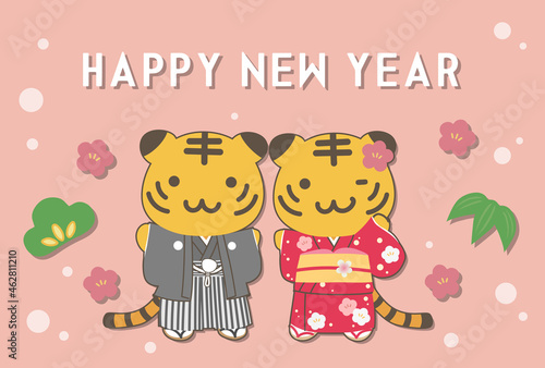 Obraz premium 2022年 年賀状_晴れ着寅・松竹梅
