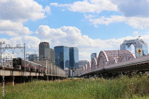 Fototapeta premium 大阪 十三から眺めた梅田の都市景観 2021.10