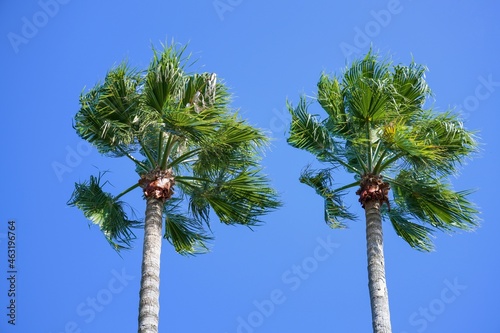 © Scott Mirror, Fototapeta premium 二本ならんだ双子のようなワシントンヤシ@大阪