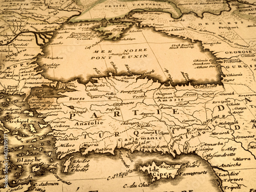 © moonrise, Fototapeta premium アンティークの古地図 トルコと黒海