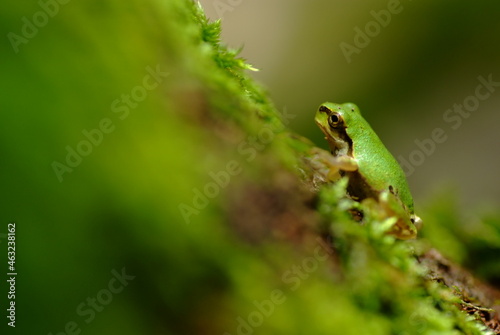 © HPY-BLUE, Obraz premium 苔が生えている木を登るアマガエル