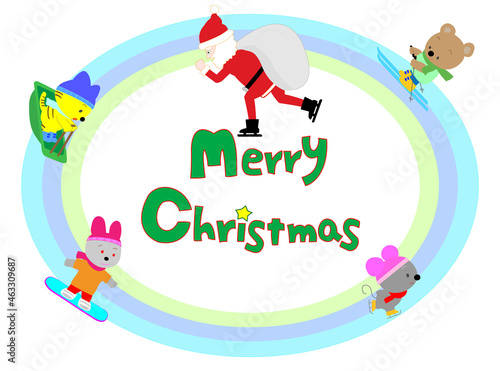 Obraz premium クリスマスの日にアイススケートで活躍するサンタクロース