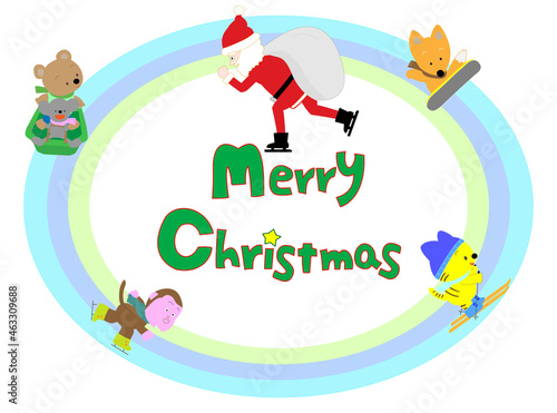© shin28, Naklejka premium クリスマスの日にアイススケートで活躍するサンタクロース