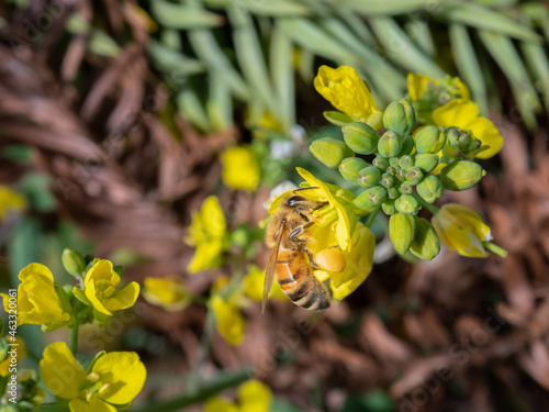 © fumoto-lab, Obraz premium 菜の花の花粉を集める蜜蜂1