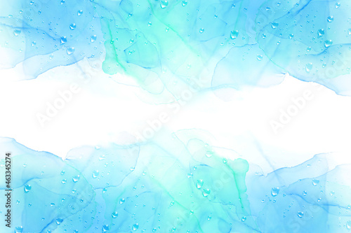 © imagefuji, Obraz premium 水滴と抽象的なボケ、ブルーとグリーンの背景