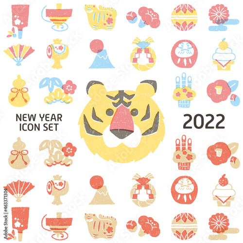 © ちよちよ, Fototapeta premium 寅年 正月アイコンセット
