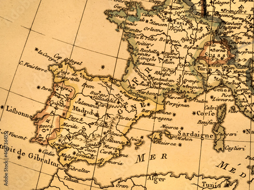 © moonrise, Naklejka premium アンティークの世界地図 イベリア半島
