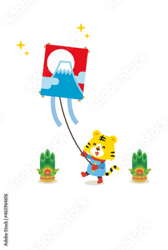 © DESIGN ARTS, Obraz premium 寅年の年賀状 凧揚げ 門松