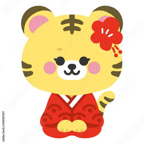 © shishimaru, Naklejka premium 寅年 着物で正座するかわいいトラの女の子 ベクターイラスト 正月