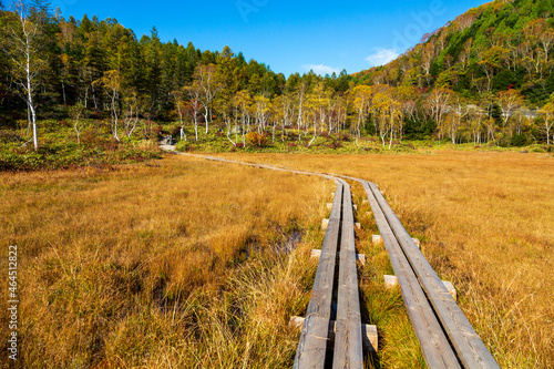© Umibozze, Obraz premium 志賀高原から紅葉の田ノ原湿原