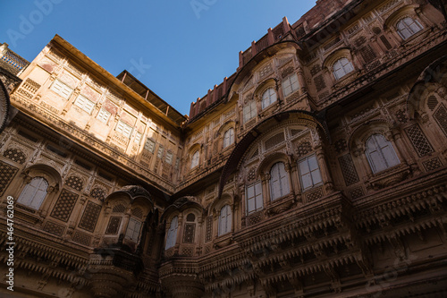 © pespiero, Obraz premium インド ジョードプルのメヘラーンガル砦の宮殿の中庭からの風景