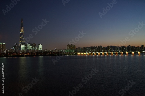 © 선일 김, Obraz premium 기차, 다리, 풍경, 공원, 한강, 노을