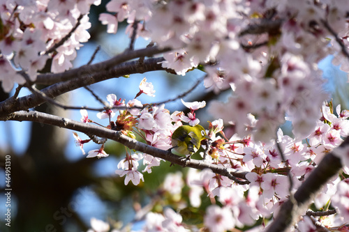 © mayudama, Obraz premium 千島桜に止まるメジロ