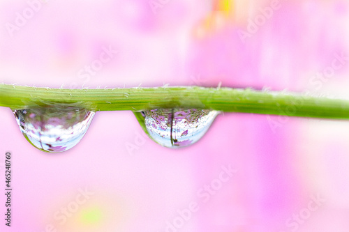 © yslab02, Fototapeta premium コスモスと雨のしずくマクロ撮影