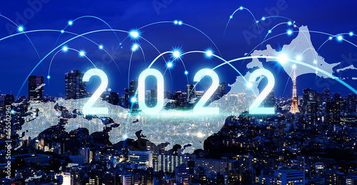 Obraz premium 2022年イメージ ビジネス向け年賀状素材 日本のネットワーク