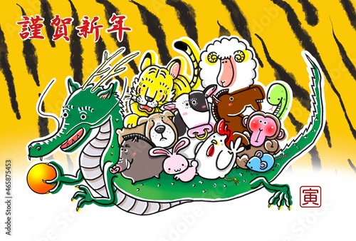 Obraz premium 年賀状イラスト かわいい十二支_寅年